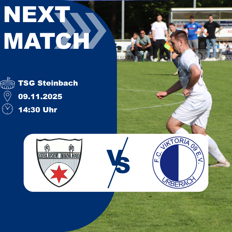 Am Sonntag ist unsere Viktoria zu Gast bei der TSG Steinbach! Um 14:30 Uhr kann unser Team mit einem Sieg zwei Plätze in der Tabelle aufsteigen. Die TSG steht mit