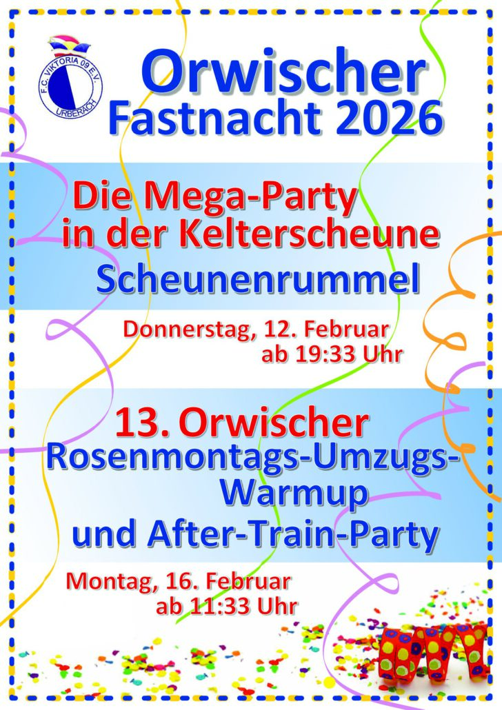 Am Donnerstag den 12. Februar lädt der FC Viktoria Urberach ab 19:33 Uhr zur Mega-Party in der Kelterscheune ein! Vor dem Rosenmontagsumzug erfolgt das Warmup ab 11:33 Uhr und nach […]