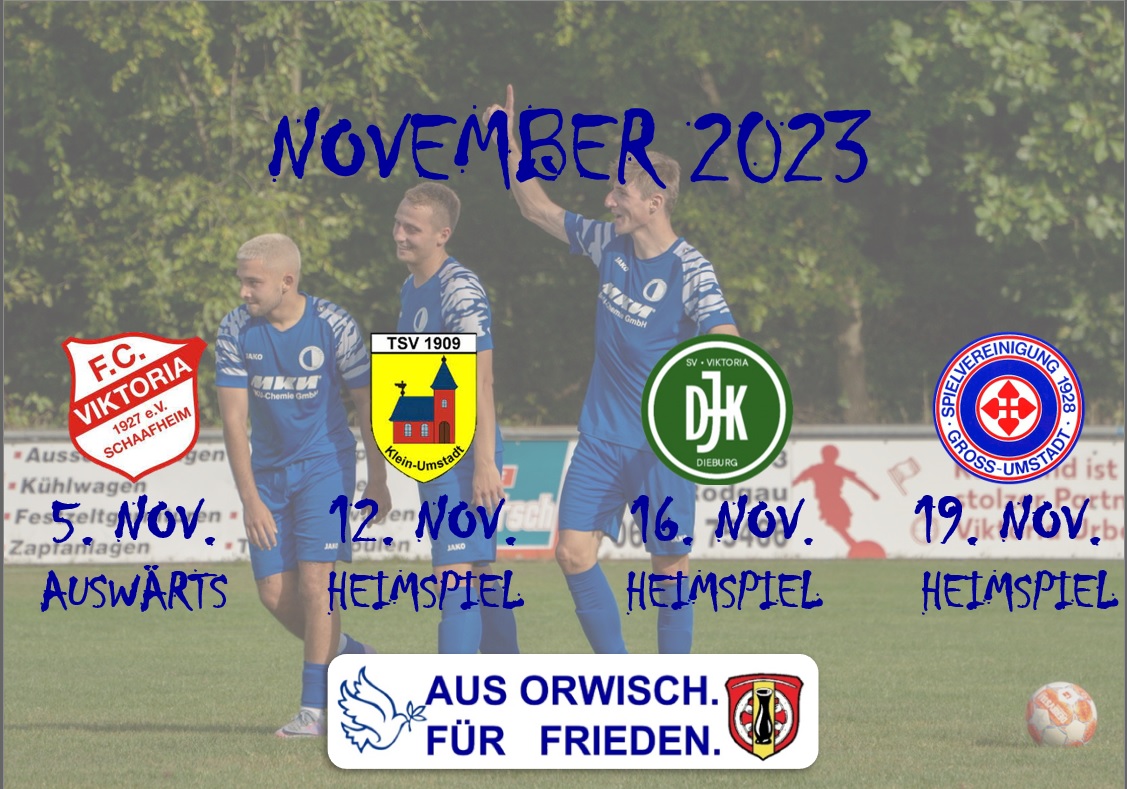 Danach empfängt man am 16. November in der Englischen Woche den Aufsteiger DJK SV Viktoria Dieburg zum Flutlichtspiel. Die Dieburger belegen nach einem eher mäßigen Saisonstart aktuell mit 13 Punkten den 14. Saisonplatz.
