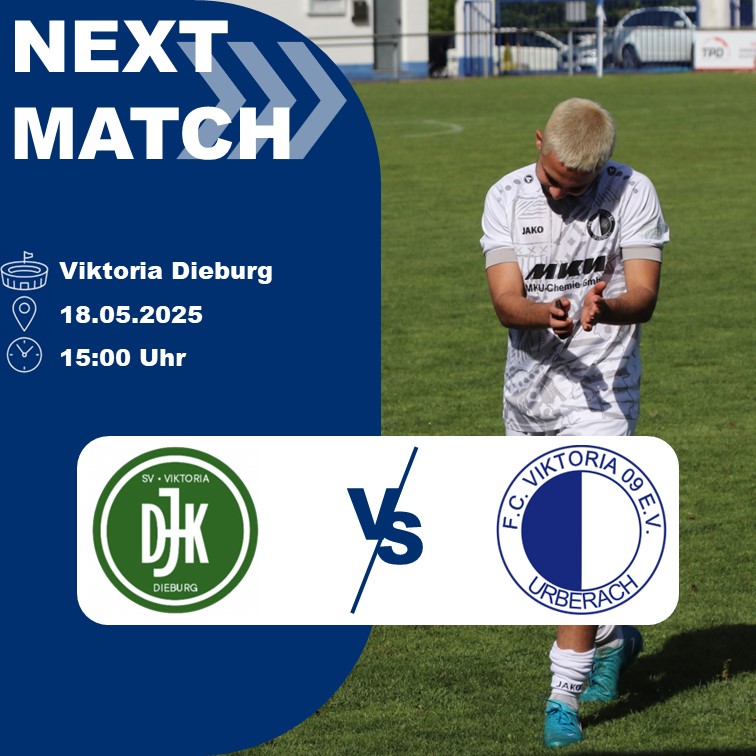 Am Sonntag ist unsere Meister-Mannschaft zu Gast bei der Viktoria aus Dieburg! Um 15 Uhr wird alles daran gelegt, keine weiteren Punkte mehr zu vergeben. Das letzte Aufeinandertreffen fand am 27.10.2024 statt und endete im torreichen 3:2 Heimsieg.