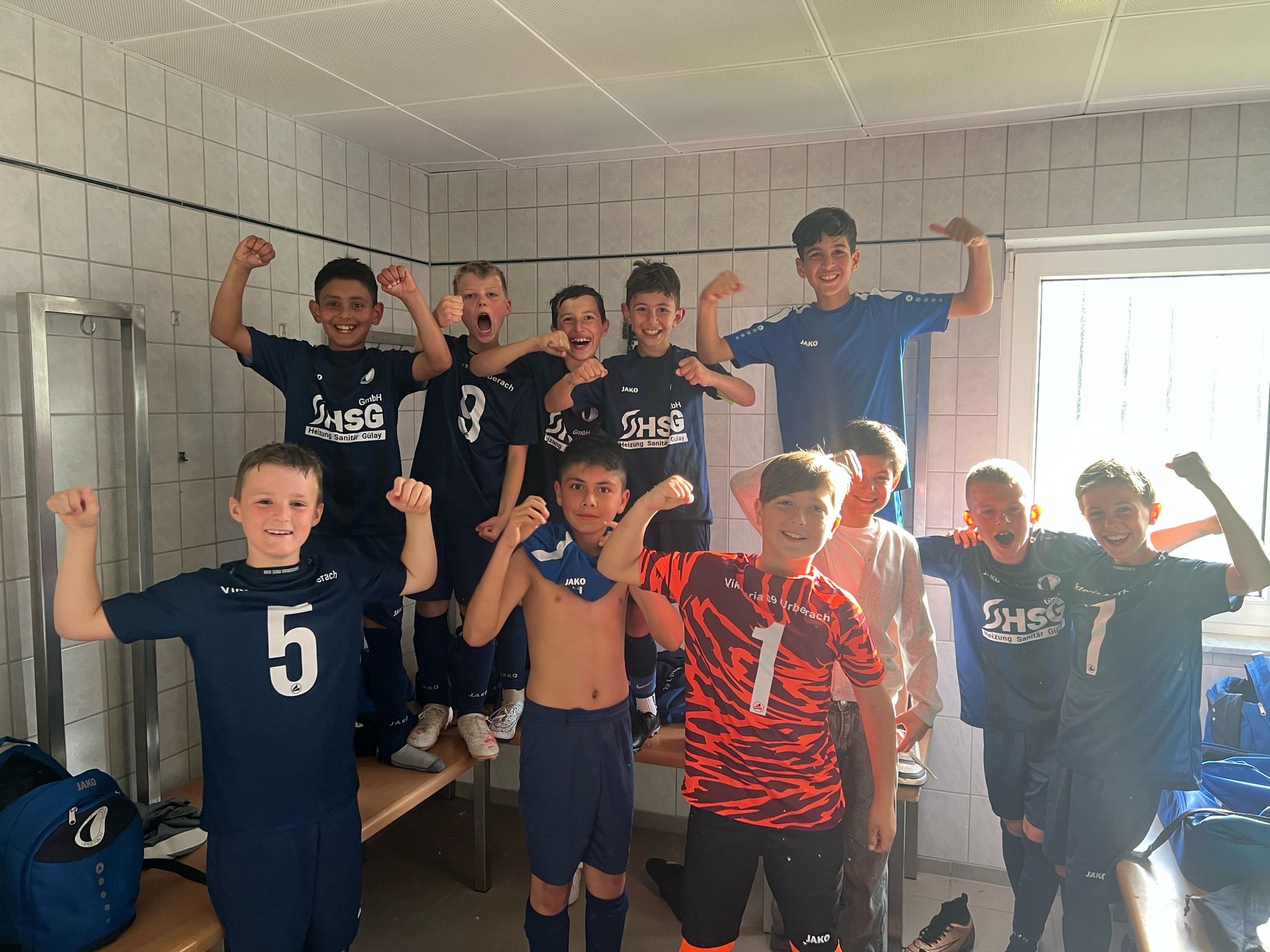Im Schatten sammelten sich unsere Jungs und ließen sich vom Trainerteam auf die zweite Hälfte einstimmen. Kaum wieder auf dem Platz, ging es schwungvoll weiter. Emir Bakan scheiterte zunächst noch am gegnerischen Torwart, doch Paul Janek reagierte blitzschnell und verwandelte den Abpraller eiskalt zum 3:1.