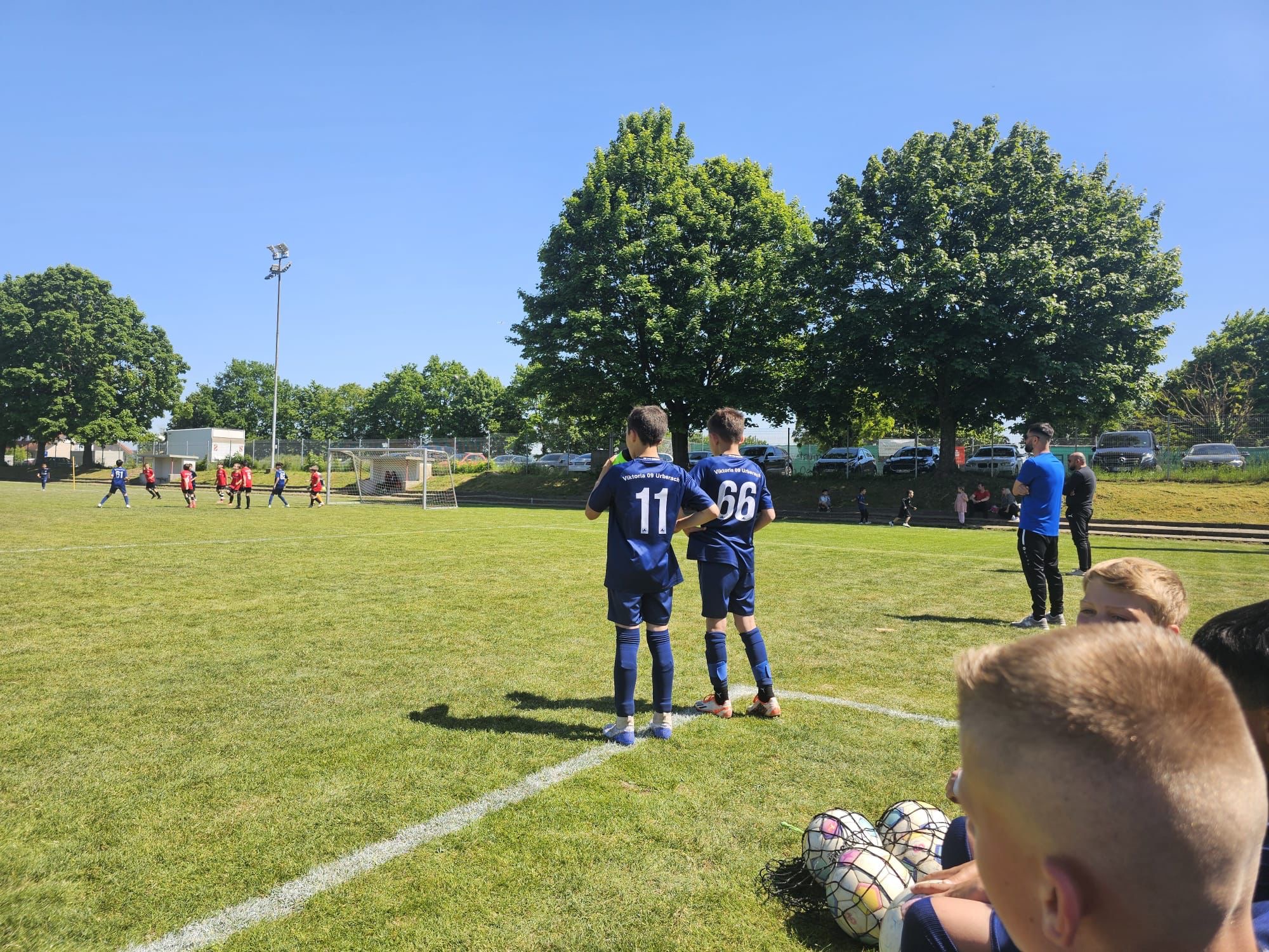 Davon ließen sich die Jungs jedoch nicht entmutigen. Das Spiel wurde auf die Hälfte des Gegners verlagert und es gab eine Torchance nach der anderen für unsere Jungs, doch der Ball wollte einfach nicht ins Netz. Entweder war der gegnerische Torwart zur Stelle oder das Aluminium stand im Weg. In dieser intensiven Phase des Spiels ging es in den Zweikämpfen robust zur Sache – nicht immer fair von Seiten der Gastgeber. Besonders Luc Haun musste einiges einstecken, kämpfte sich aber immer wieder durch und wurde kurz vor dem Halbzeitpfiff belohnt: Mit einem sehenswerten Treffer glich er zum 1:1 aus.
