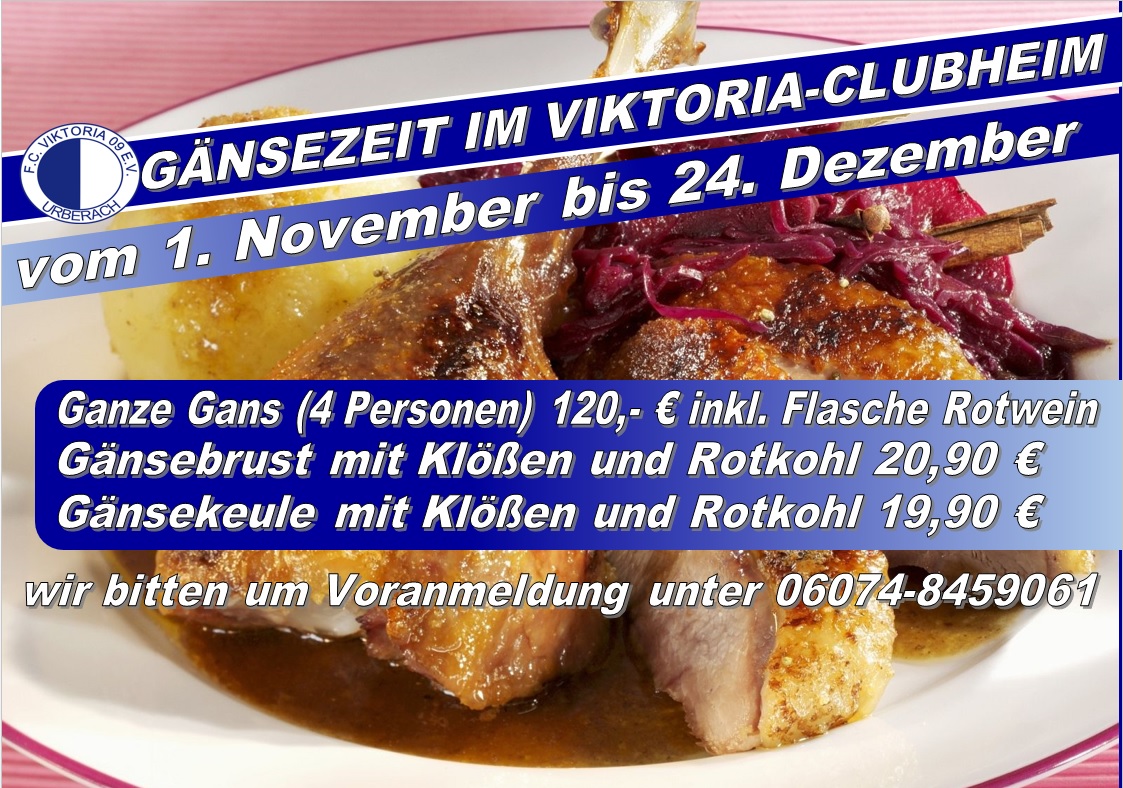 Vom 1. November bis 24. Dezember serviert das Team um Vereinswirt Andi Köth zur Gänsekeule, Gänsebrust oder ganzer Gans ein.