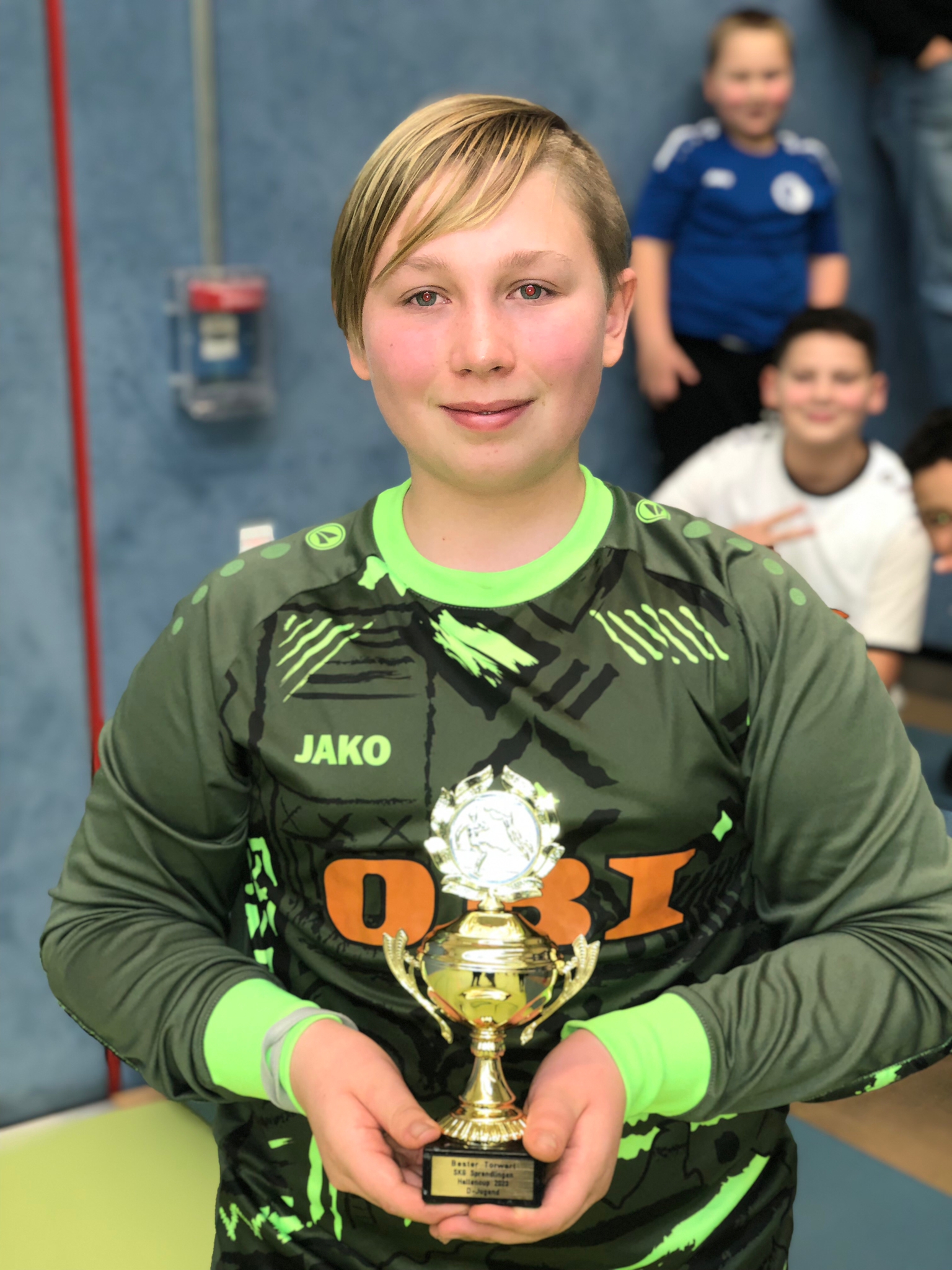 Beim Turnier der SKG Sprendlingen wurde unser D-Jugend-Torwart Louis Pyka als bester Keeper ausgezeichnet – Glückwunsch Louis 🎉