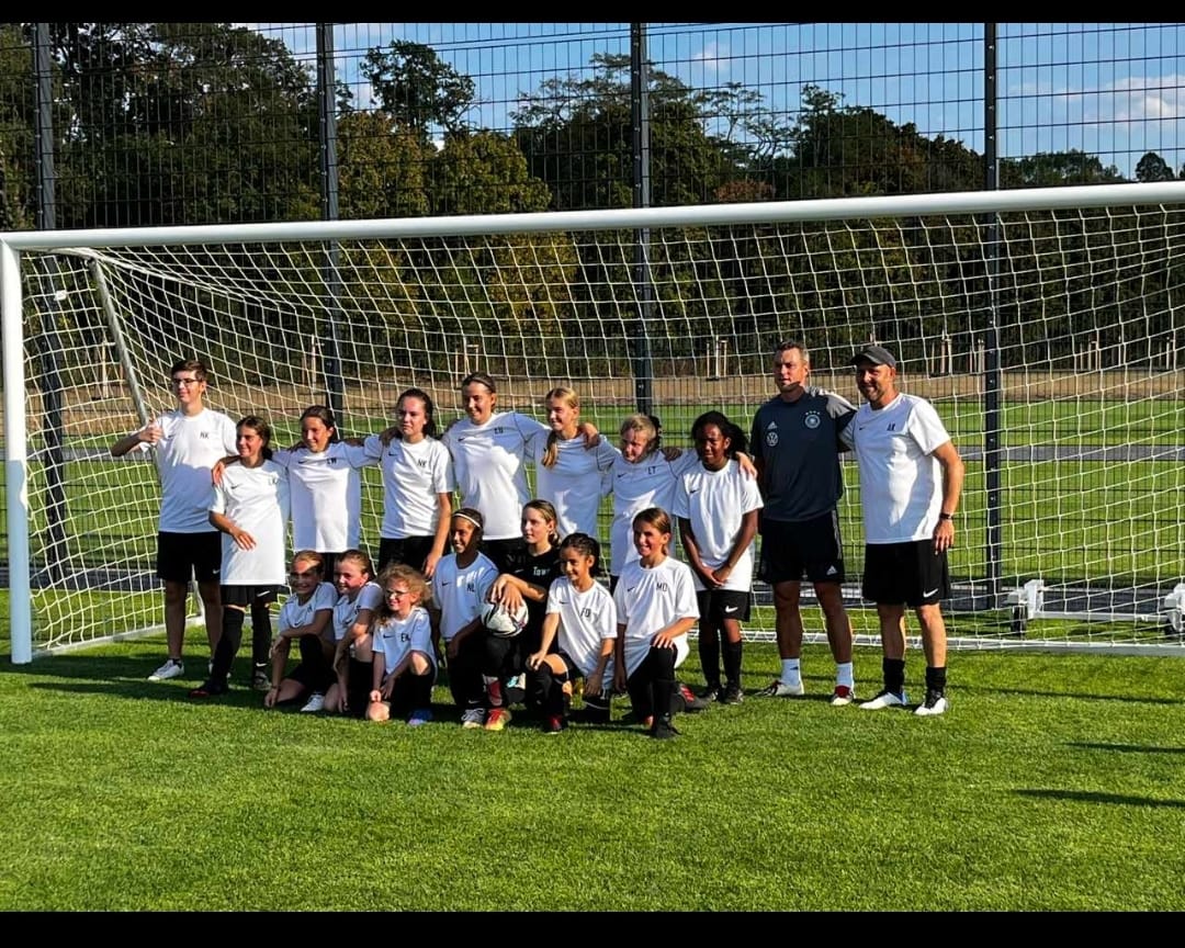 Das Highlight wartete dann auf einem der vier Hybrid-Rasenplätze. Unter Anleitung des ehemaligen Bundesliga-Profis und U19-Co-Trainers Hanno Balitsch trainierten die Mädels eine Stunde lang unter Nationalmannschaftsbedingungen und hatten sichtlich ihren Spaß.