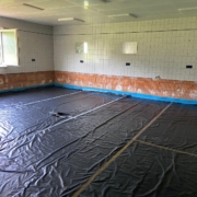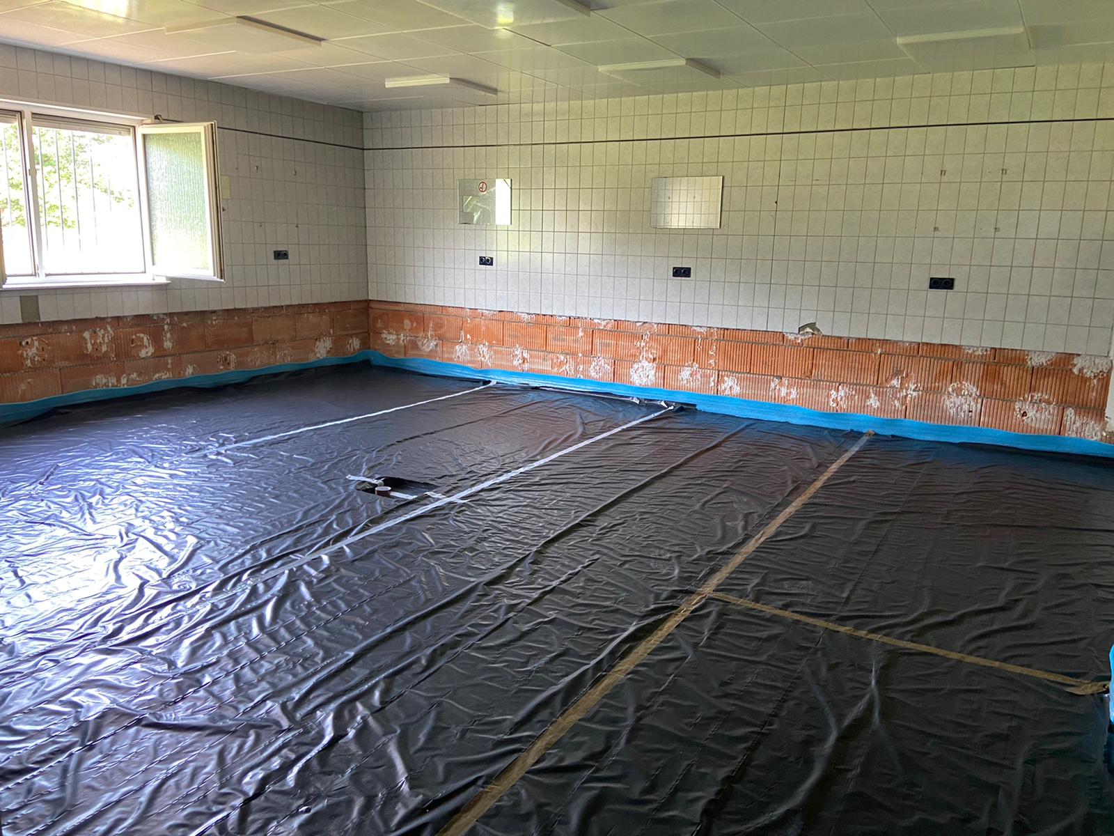 Am vergangenen Wochenende haben die Vorbereitungsarbeiten für die Estrichverlegung im Tribünentrakt des Urberacher Waldstadions begonnen.