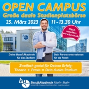 Am kommenden Samstag veranstaltet unser Partner Berufsakademie Rhein-Main den Open Campus – die große duale Studienplatzbörse