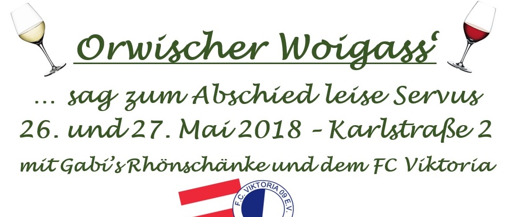 Gemeinsam mit Gabi’s Rhönschänke lädt der FC Viktoria alle Weinkenner und solche, die es werden wollen zur Orwischer Woigass 2018 ein.