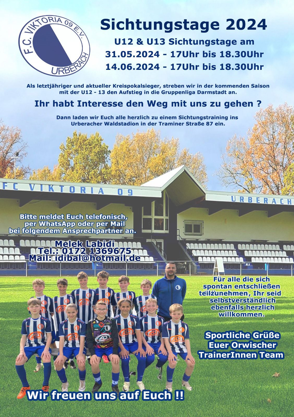 Am 31. Mai und 14. Juni finden die Sichtungstraining des FC Viktoria für die Jahrgänge U12 und U13 statt.