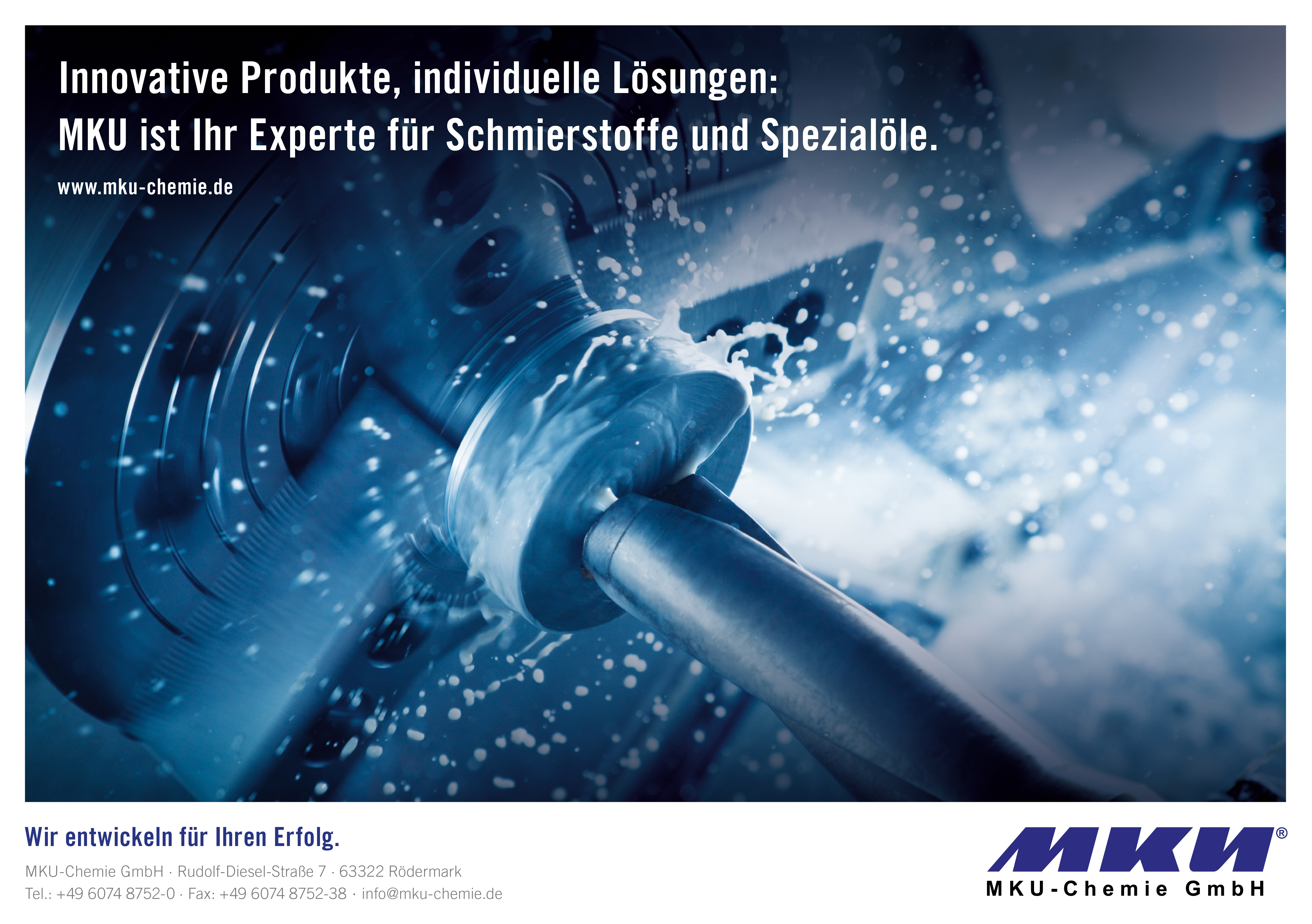 Als Lieferant für die Industriebranchen Metall, Glas, Keramik, Halbleiter, Holz, Kunststoff und Gummi, stellt MKU Kühlschmierstoffe in sämtlichen Ausführungen, wie hydraulische Flüssigkeiten, Getriebe- und Umlaufschmieröle, Reiniger und Trennmittel sowie Zwischenprodukte wie Korrosionsschutzinhibitoren, Emulgatoren, AW- und EP-Additive her.