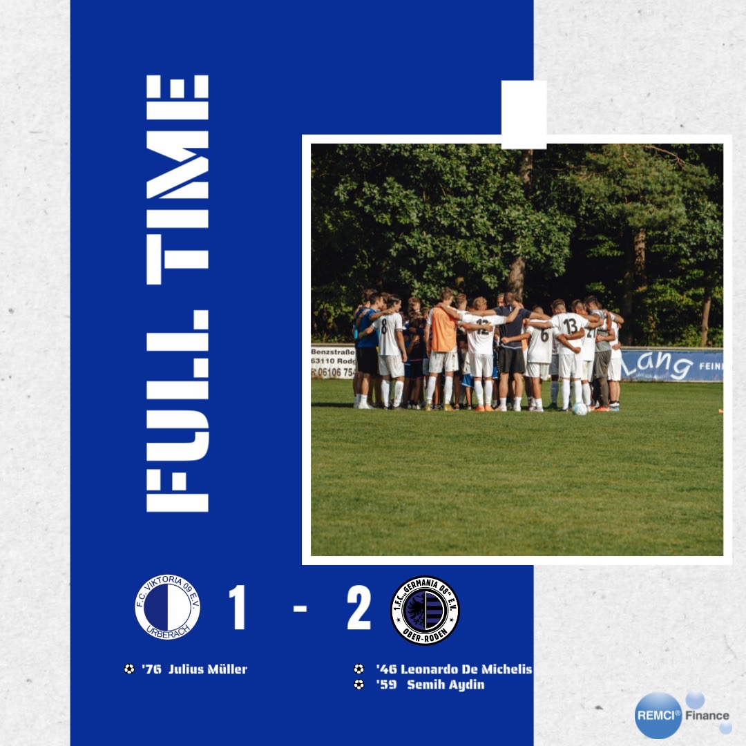 Daraufhin wurde das Spiel ein wenig wild. Der Tabellenführer musste viel riskieren, die Germania kam zu Kontern. Dennoch konnten die Urberacher den Anschlusstreffer erzielen. Julius Müller war hellwach und konnte einen verunglückten Rückpass im Tor unterbringen. Jetzt wollten sie auch noch den Ausgleich erzielen. Das letzte bisschen Glück fehlte heute aber. Ein Kopfball von Fynn Kantz streifte den Pfosten. Ein weiterer Abschluss nach einem Einwurf konnte abgewehrt werden. So blieb es beim 1:2-Endstand.