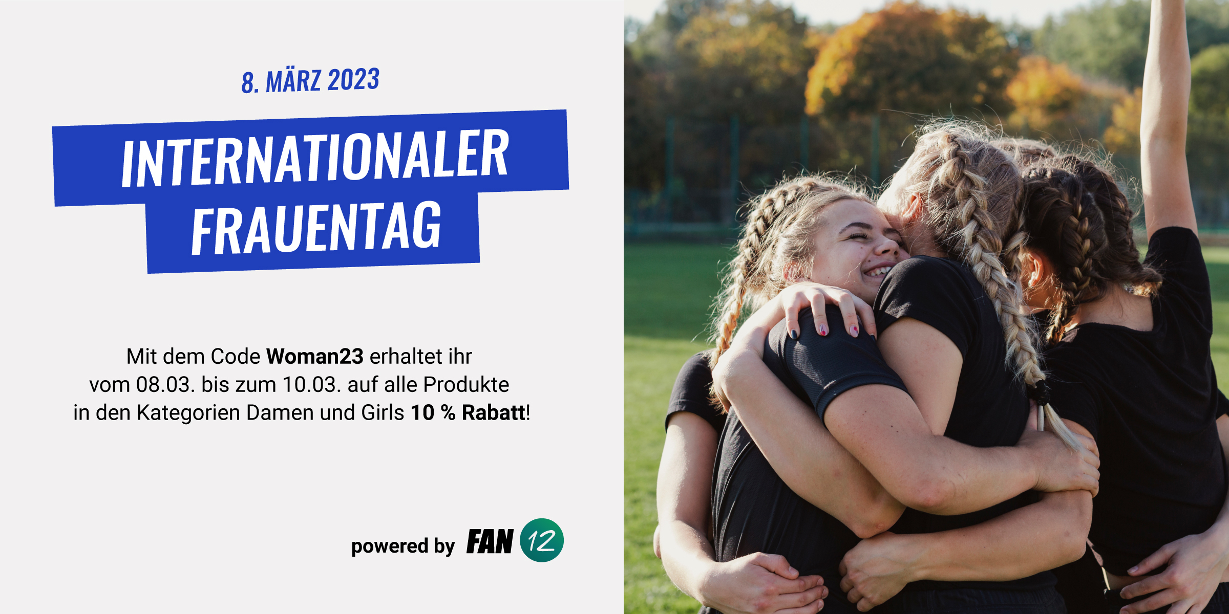 Zum Weltfrauentag 2023 möchten wir allen Frauen unter uns ganz besondere Aufmerksamkeit schenken: Mit dem Code Woman23 erhaltet ihr in unserem Shop vom 8. bis 10. März 10% Rabatt auf alle Produkte der Kategorie Damen und Girls.